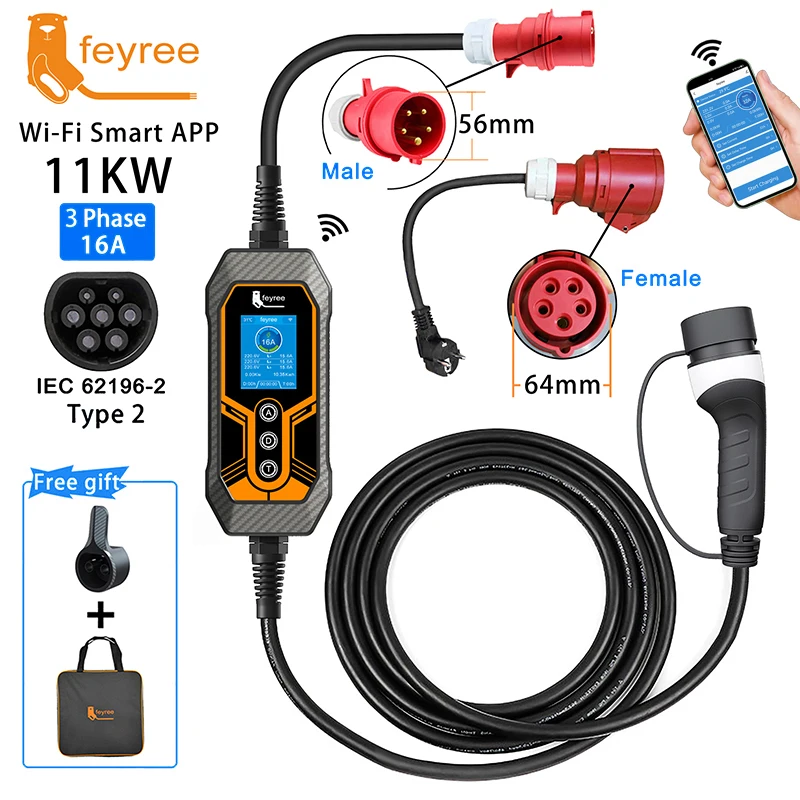 MUSTART 11kW Typ 2 EV Ladegerät - 16A 3-Phasen Mit CEE-Stecker, 6,5m Kabel