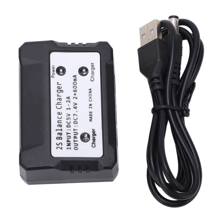 Immer volle Power für dein RC-Spielzeug! Dieses 2-in-1-Ladegerät von Keenso ist speziell für 7,4-V-Lithium-Polymer-Akkus gemacht. Perfekt für WLtoys-Autos, Boote und andere ferngesteuerte Modelle.\n\nMit Balance-Funktion für schonendes Laden und längerer Akku-Lebensdauer. Das Gehäuse ist aus robustem Kunststoff, das Ladekabel hat eine Kontrollleuchte: Grün-Rot-Blinken während des Ladens, erlischt bei voller Ladung.\n\nEingang: DC 5V/2A (per USB), Ausgang: 7,4 V/1A. Überspannungs-, Überlast- und Kurzschlussschutz sind integriert – für maximale Sicherheit.\n\nSuper leicht (nur 34 g) und einfach mitzunehmen. Nie wieder leer – nur noch Spaß!