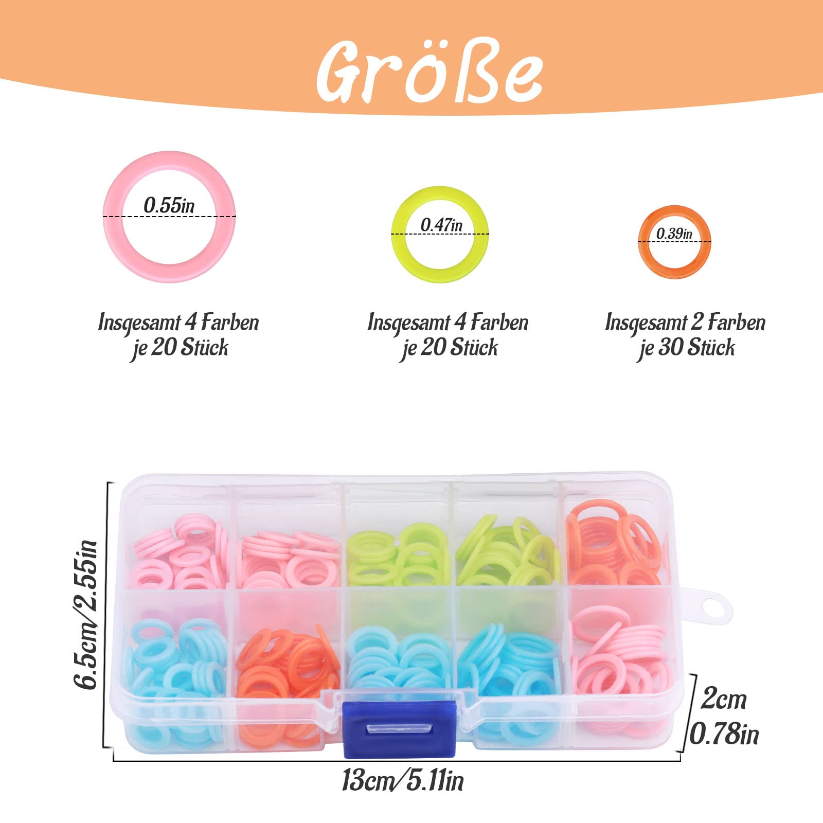 Für alle Strick- und Häkelfans! Diese Laluky Strickmarker-Ringe sind einfach praktisch! Kommen in nem Set mit 240 Teilen - 80 kleine, 80 mittlere und 80 große. So hast du für jedes Projekt die richtige Größe parat. Aus hochwertigem Hartplastik, gleiten super easy über die Nadeln und sind richtig gut verarbeitet. Die verschiedenen Farben (Orange, Blau, Rosa) helfen dir, deine Muster besser zu unterscheiden und zu markieren, wo Stiche beginnen und enden. Mega praktisch: Die Aufbewahrungsbox mit 10 Fächern und wiederverschließbarem Deckel! So hast du alles ordentlich sortiert und griffbereit. Perfekt fürs Stricken, Nähen, Häkeln oder andere Bastelprojekte. Macht einfach mehr Spaß, wenn man nicht ständig nach seinen Markern suchen muss! Einfach ein muss für alle, die gerne kreativ sind. Ob Anfänger oder Profi - mit diesen Ringmarkern wird dein nächstes Projekt noch besser! Einfach bestellen und loslegen - deine Strickutensilien-Sammlung ist damit komplett!
