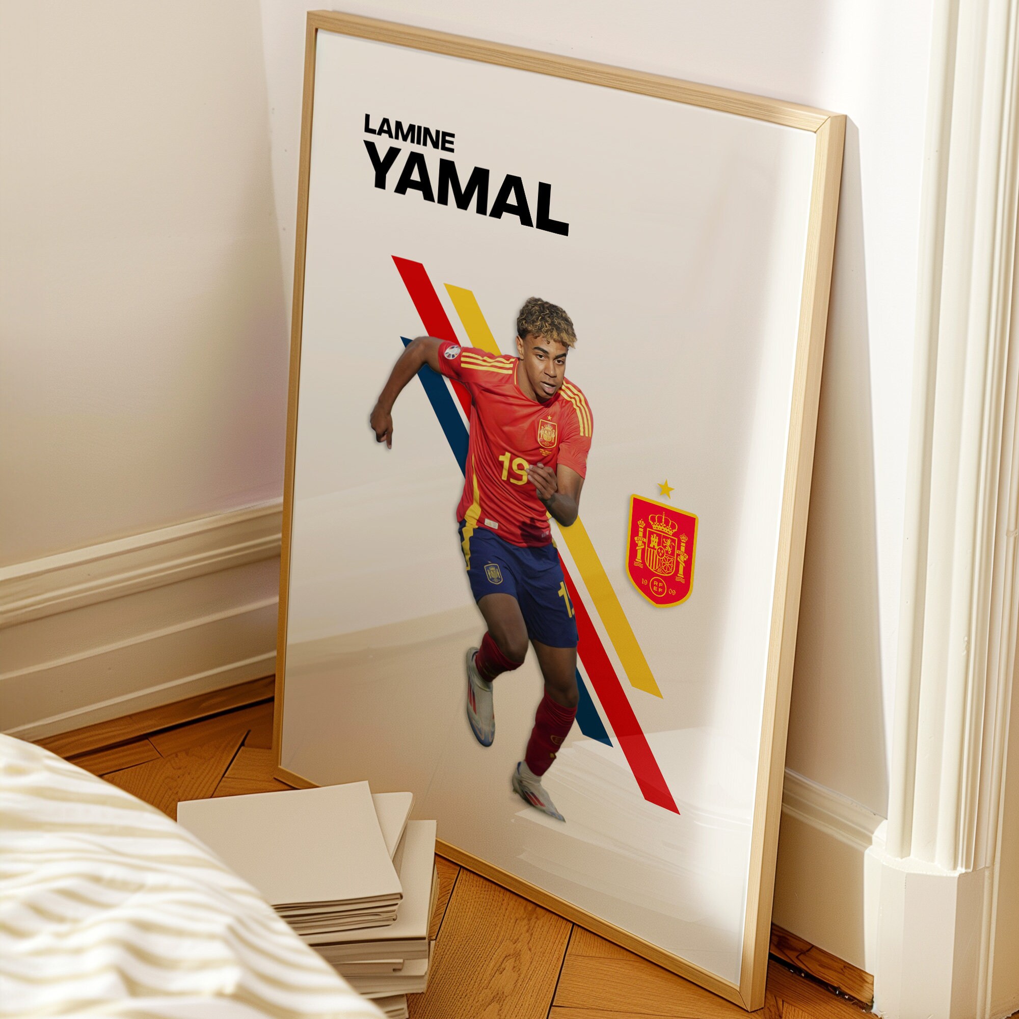 Moderne Wandkunst für dein Zuhause! Dieser stylische Leinwanddruck mit Lamine Yamal Design bringt zeitgenössische Ästhetik in deine vier Wände. Mit 20x30 cm perfekt für kleinere Wandflächen oder als Teil einer Galerie. Hergestellt auf hochwertiger Leinwand für intensive Farben und langlebige Qualität. Jedes Stück wird sorgfältig von Hand geprüft, um beste Ergebnisse zu garantieren. Ein echter Hingucker, der jeden Raum aufwertet - ob Wohnzimmer, Schlafzimmer oder Flur. Einfach aufhängen und sofort die positive Wirkung von schöner Kunst genießen. Perfekt für alle, die ihr Zuhause individuell gestalten möchten!
