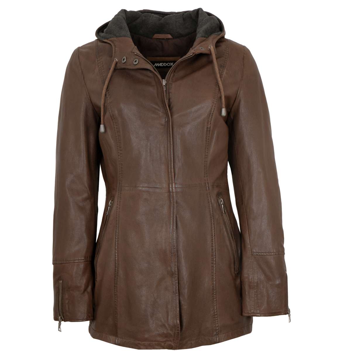 Maddox Damen Lammnappa Ledermantel Mit Kapuze - Weiches Echtleder In Braun