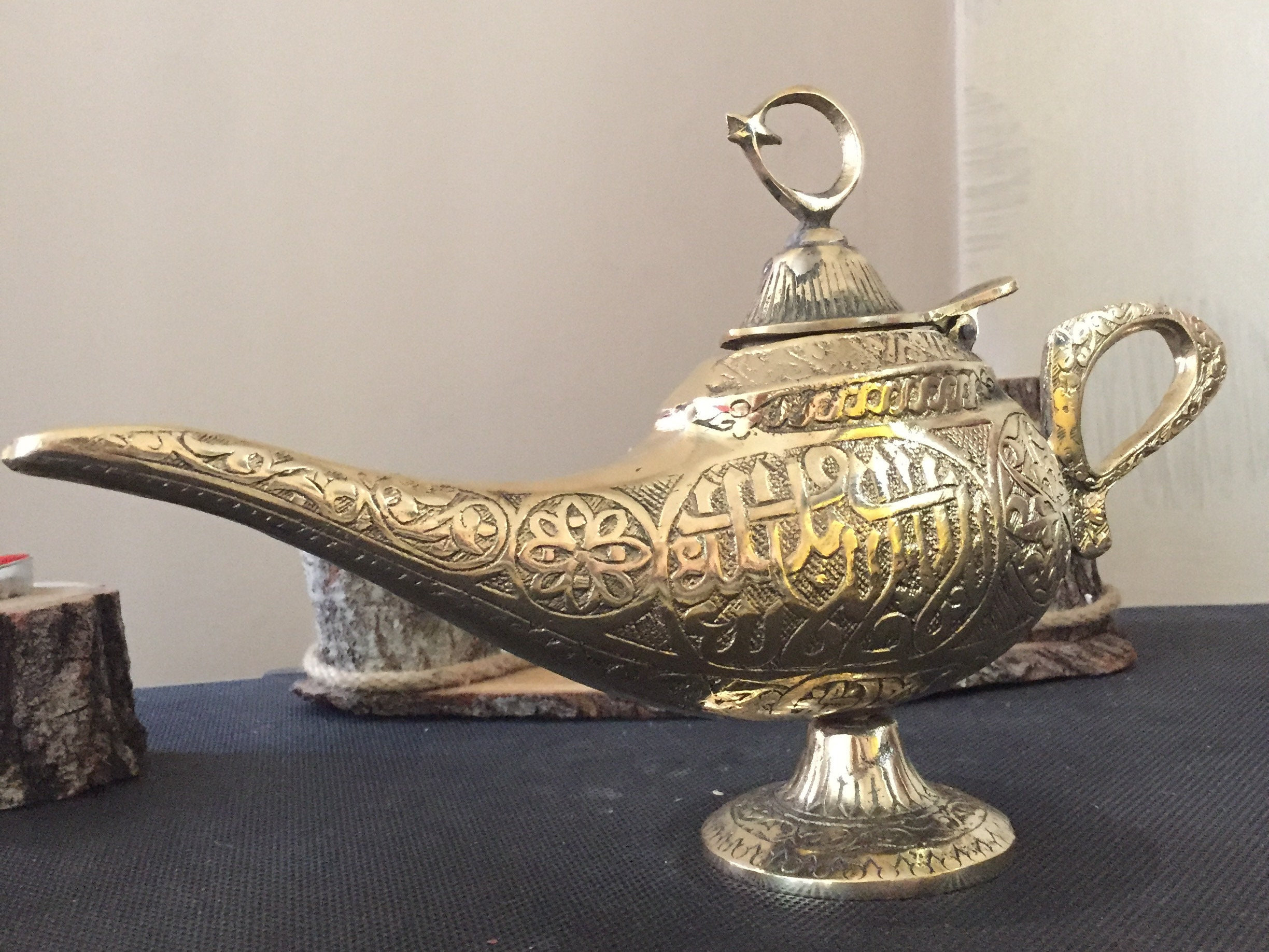 JMD Aladdin Genie-Lampe Messing - Räucherstäbchenhalter 15,2cm Antik Gold