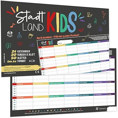 Viel Lachen garantiert mit Quatschkopf Kinder! Die lustige Alternative zu Stadt Land Fluss mit 35 kreativen Kategorien. Für Kinder ab 9 Jahren und die ganze Familie. Im großen DIN A4 Block mit 50 Blättern - lange Spielspaß garantiert. Hier zählt Kreativität, nicht Wissen! Perfekt für Spieleabende, Geburtstage oder Reisen. Made in Germany auf hochwertigem Papier. Ein ideales Geschenk für kleine und große Wortakrobaten. Macht jeden Abend zum lustigen Spiele-Event!