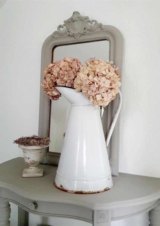 Träumst du von französischem Landhaus-Charme? Dieser verzinkte Metall-Krug bringt den Look direkt in dein Zuhause! Mit 22,5 cm Höhe ist er der perfekte Eyecatcher für jeden Tisch oder Sideboard. Das wunderschöne 'Blumengarten'-Muster und die absichtlich antik wirkende Oberfläche verleihen ihm diesen typischen Shabby-Chic-Charakter. Perfekt für Trockenblumen, Kunstblumen oder dekorative Zweige - allerdings nicht für frisches Wasser geeignet (einfach einen wasserdichten Einsatz verwenden). Ob im Wohnzimmer, auf dem Kaminsims oder in der Küche - dieser Krug setzt überall romantische Akzente. Super als Hochzeitsdeko, für besondere Anlässe oder einfach um deinem Zuhause mehr Persönlichkeit zu verleihen. Auch ein tolles Geschenk für Einweihungen, Geburtstage oder für Menschen, die den Vintage-Look lieben. Einfach hinstellen und sich an der gemütlichen Atmosphäre erfreuen!