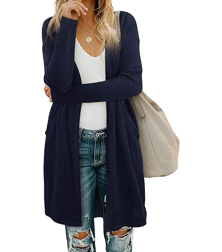 Eleganzeit Damen Strickjacke Lang - Offener Übergangsmantel Mit Taschen