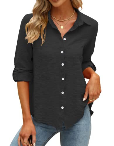 Cuptacc Bluse Damen Langarm - Gestreift Mit V-Ausschnitt Und Taschen