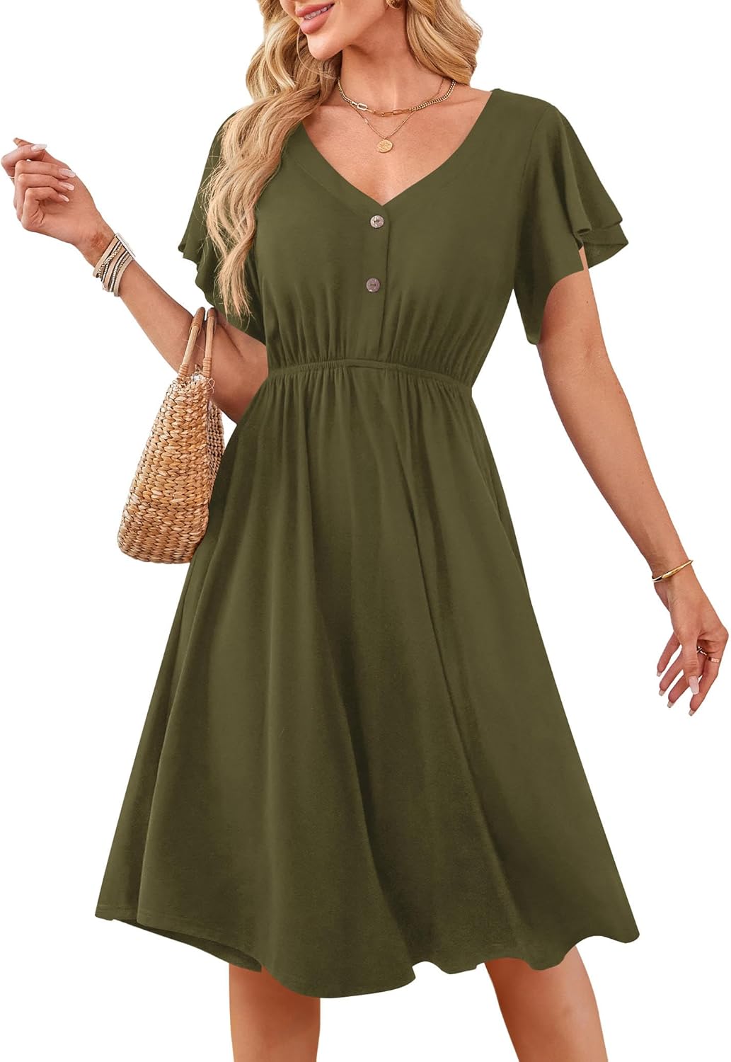 Oh wow, dieses Florboom Kleid ist perfekt für den Herbst! Langarm, mit schickem V-Ausschnitt und - das Beste - mit praktischen Seitentaschen! Das A-Linie Design schmeichelt jeder Figur, der elastische Bund sitzt super bequem. Aus 92% Viskose und 8% Elasthan - weich, dehnbar und angenehm auf der Haut. Ob für die Arbeit, Date night oder einfach so - damit siehst du immer klasse aus! Die deutsche Größenauswahl passt genau, einfach deine normale Größe nehmen. Der Swing-Schnitt gibt dir volle Bewegungsfreiheit, und die Taschen sind nicht nur stylisch, sondern auch mega praktisch. Stell dir vor: kein Herumgesuche mehr nach deinem Handy oder Schlüsseln! Dieses Kleid ist ein echter Allrounder - elegant genug für besondere Anlässe, aber bequem genug für den Alltag. Ein Must-have für jede Herbstgarderobe!