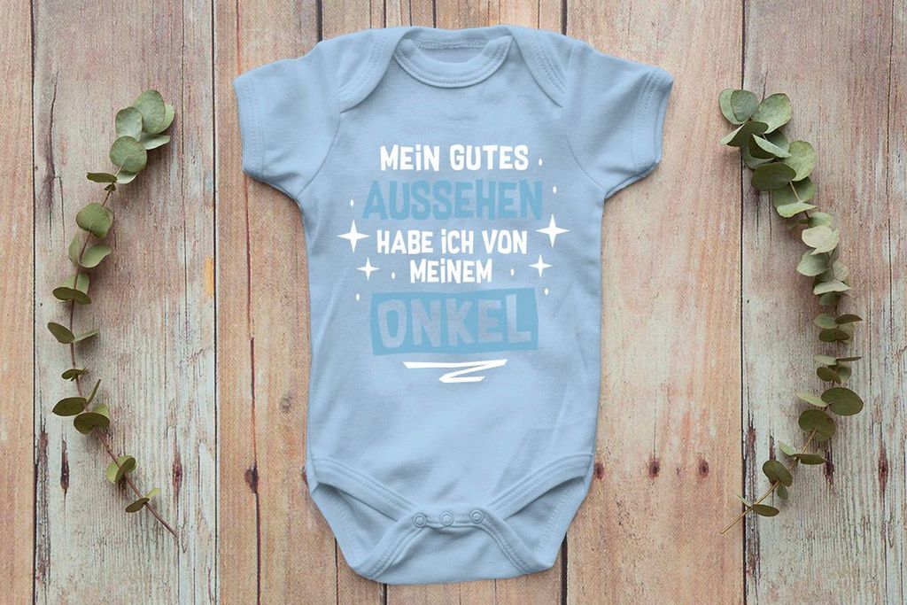Baby Body Langarm Mit Onkel-Spruch - 'Mein Gutes Aussehen Habe Ich Von Meinem ONKEL'