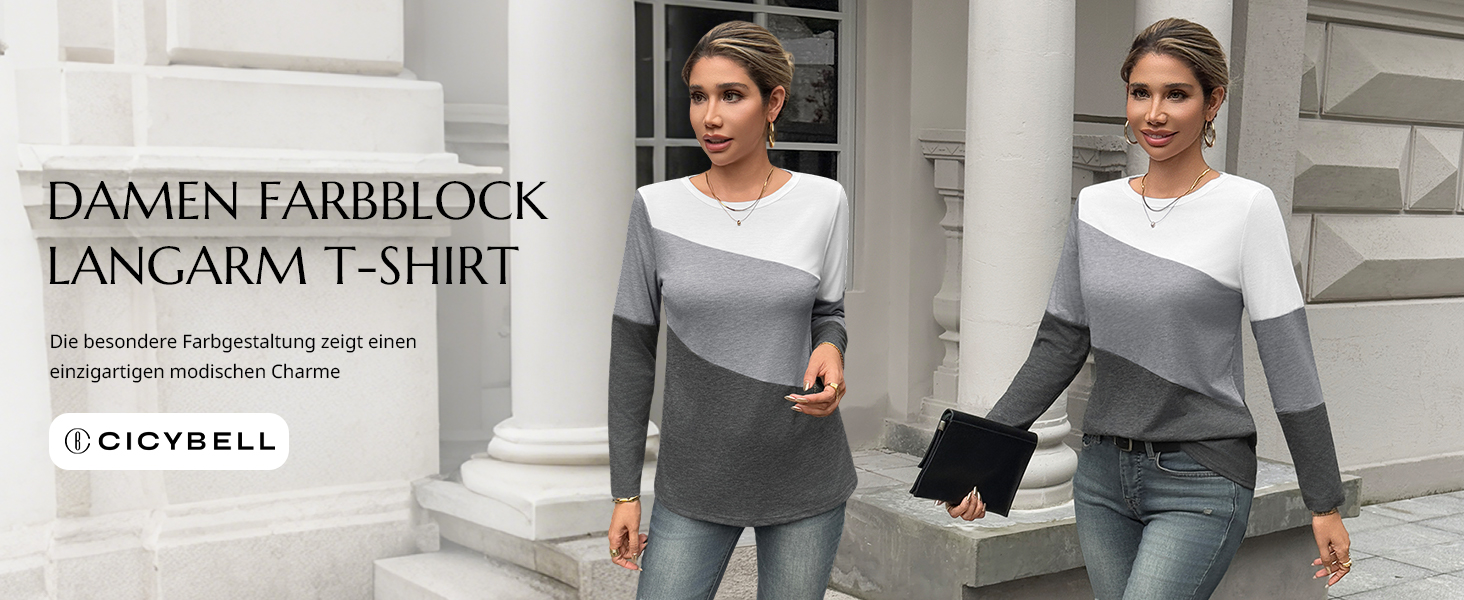 Fisoew Damen Sweatshirt Farbblock Design - Langarm Mit Rippbündchen, 92% Polyester