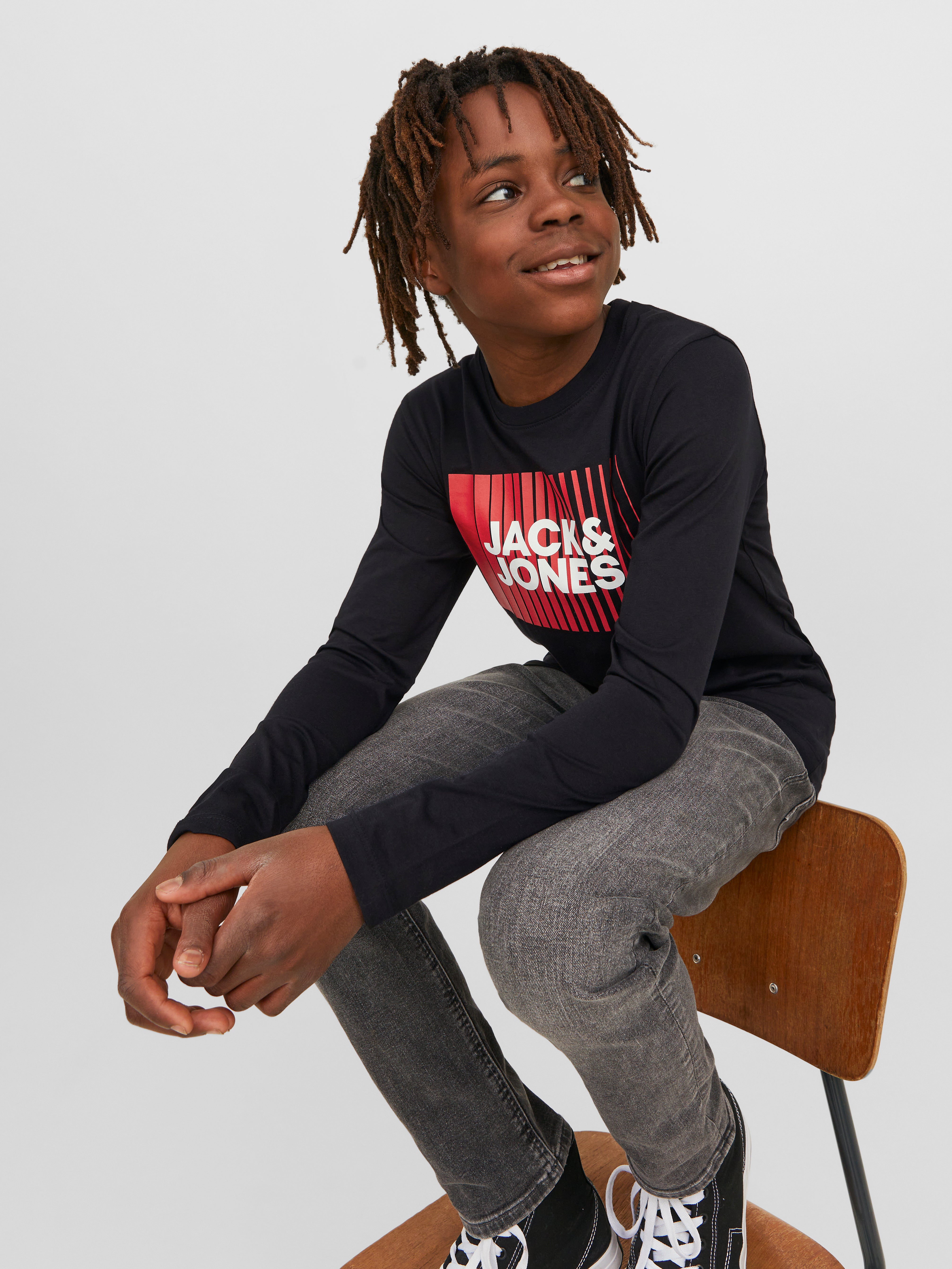 Suchst du ein lässiges Basic-Shirt für die kühlere Jahreszeit? Dieses Langarm-T-Shirt von Jack & Jones Junior hat genau den richtigen Boy-Fit, der nicht zu eng sitzt aber trotzdem modern aussieht. Aus 100% weicher Baumwolle - super angenehm auf der Haut und angenehm zu tragen. Der klassische Crewneck-Ausschnitt und die langen Ärmel machen es zum perfekten Begleiter für Herbsttage. Egal ob unter der Jacke oder solo, dieses Shirt sitzt immer richtig. Die Qualität stimmt einfach, wascht es ruhig mehrmals - die Form bleibt erhalten. Perfekt für Schule, Freizeit oder gemütliche Tage zuhause. In verschiedenen Farben erhältlich, aber dieses Grau ist echt ein Allrounder!