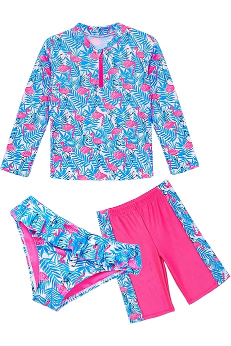 Dieses süße 2-teilige Bade-Set ist perfekt für aktive Mädchen! Langarm-Oberteil mit Stehkragen und passende Shorts bieten optimalen UV-Schutz am Strand und im Pool. Aus 85% Polyester, 15% Elasthan - hautfreundlich, schnell trocknend und atmungsaktiv. In Größen von 5-6 Jahre bis 15-16 Jahre erhältlich. Ideal zum Schwimmen, Surfen, Baden oder für den Wasserpark. Die bedruckte Optik sieht stylisch aus, das Material liegt angenehm auf der Haut. Mit elastischem Bund für perfekten Sitz. Mach deiner Tochter eine Freude mit diesem praktischen und schicken Bade-Outfit! Perfekter Schutz vor Sonne bei maximalem Spielspaß.