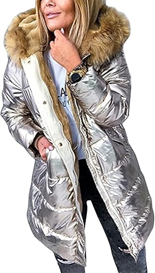 Fulidngzg Winterparka Damen - Langer Gefütterter Mantel Mit Kapuze