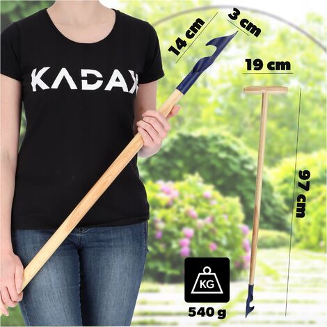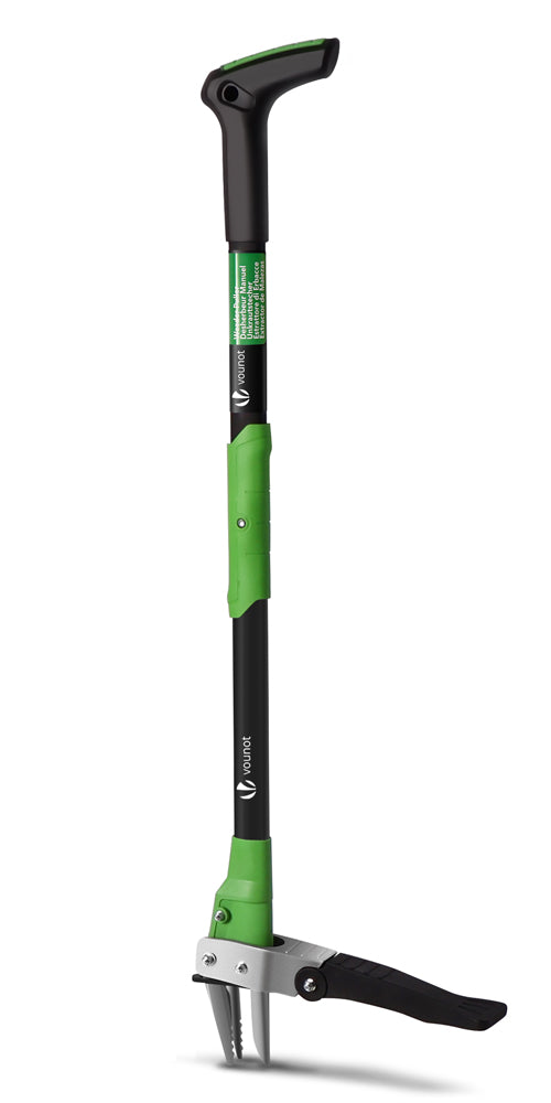Schluss mit Rückenschmerzen beim Unkrautjäten! Dieser Unkrautstecher mit 1,1m langem Holzstiel lässt dich bequem im Stehen arbeiten. Einfach das Fußpedal drücken, die 4 Metallkrallen greifen das Unkraut an der Wurzel und schon ist der lästige Löwenzahn Geschichte.