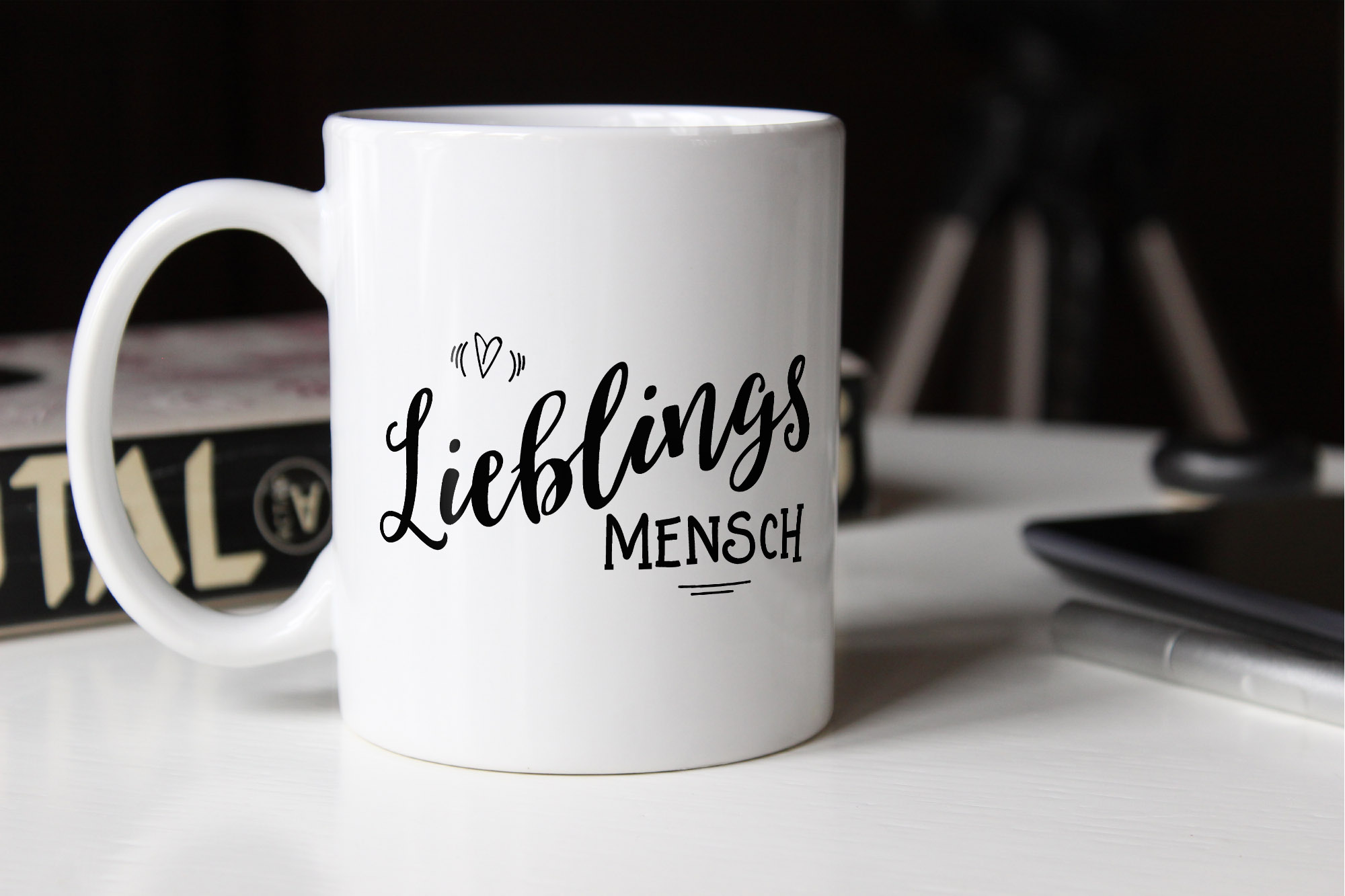 LIEBTASTISCH Personalisierter Kaffeebecher - Lasergravur Steingut 300ml Beige