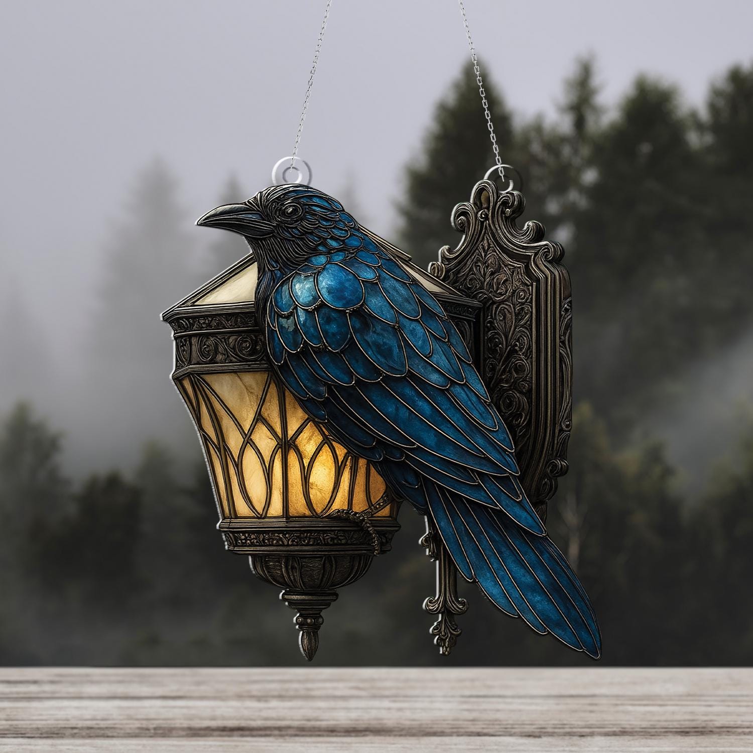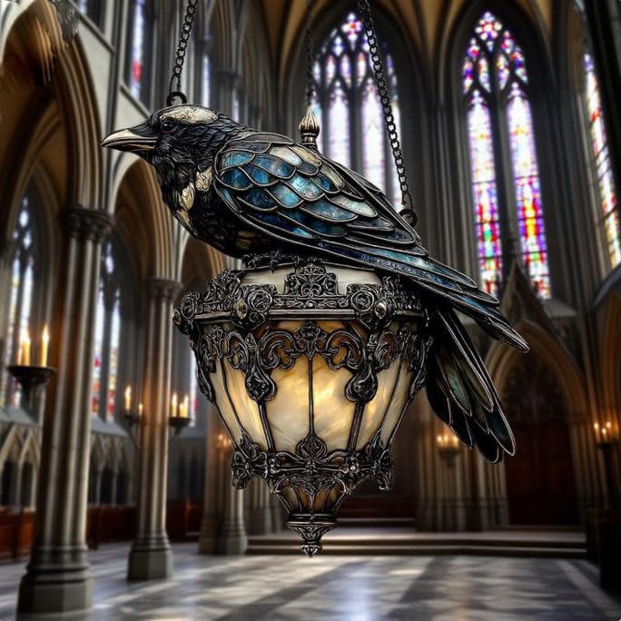 Grüßige Halloween-Atmosphäre! Dieser mystische Rabe auf einer Laterne bringt dunkle Eleganz in dein Zuhause. Der Sonnenfänger aus Acryl im Vintage-Buntglas-Look ist das perfekte Accessoire für Dark Academia und Gothic-Fans.\n\nErhältlich in zwei Größen: 15x15cm oder 20x20cm - beide nur 0,3cm dick und superleicht. Das schwarze Design mit der kunstvollen Krähe schafft einzigartige Licht- und Schatteneffekte, wenn die Sonne durchs Fenster scheint.\n\nEinfach aufzuhängen an:\n• Fenstern und Glasfronten\n• Wänden als dekorativer Blickfang\n• Zimmerpflanzen als besonderes Detail\n• Über deinem Bücherregal\n\nDas hochwertige Acryl-Material ist langlebig und bruchsicher - kein Vergleich zu empfindlichem Glas! Der Retro-Charme passt perfekt zu:\n• Halloween-Partys und Horror-Themen\n• Dark Academia Einrichtungen\n• Vintage und Gothic Wohnstil\n• Herbst- und Winterdekoration\n\nBesonderheiten:\n• Einfaches Hängedesign - sofort einsatzbereit\n• Wiederverwendbar für viele Jahre\n• Pflegeleicht und staubabweisend\n• Atmosphärische Stimmung garantiert\n\nVerwandle deine Räume in eine mystische Oase - ob für die Halloween-Saison oder als dauerhafte Dekoration. Dieser Rabe wird zum absoluten Hingucker!\n\n2025er Modell - sei einer der Ersten mit diesem einzigartigen Design!