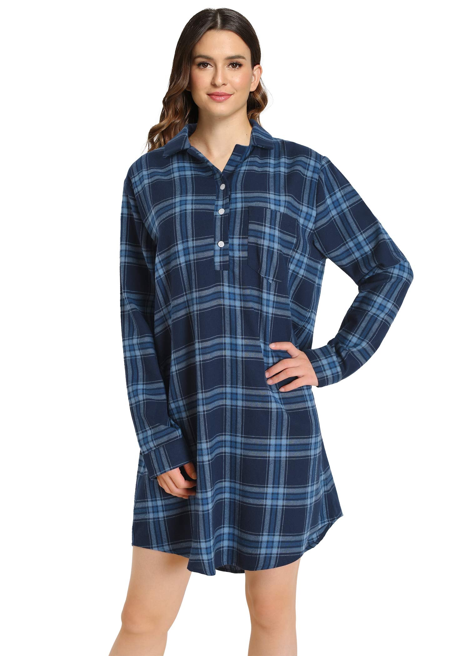 Latuza Damen Flanell-Bademantel Mit Knopfleiste - 100% Baumwolle - Langarm Hausmantel Mit Taschen