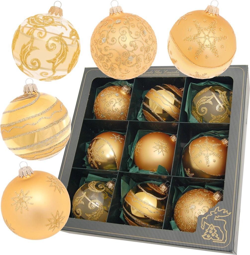 Krebs Glas Lauscha Weihnachtskugeln - 3 Stück Gold Mit Komet Motiv Ca. 8 Cm