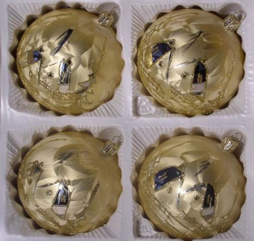 Lauscha Weihnachtskugeln Champagner - 8cm Christbaumschmuck 4er Set Eislack