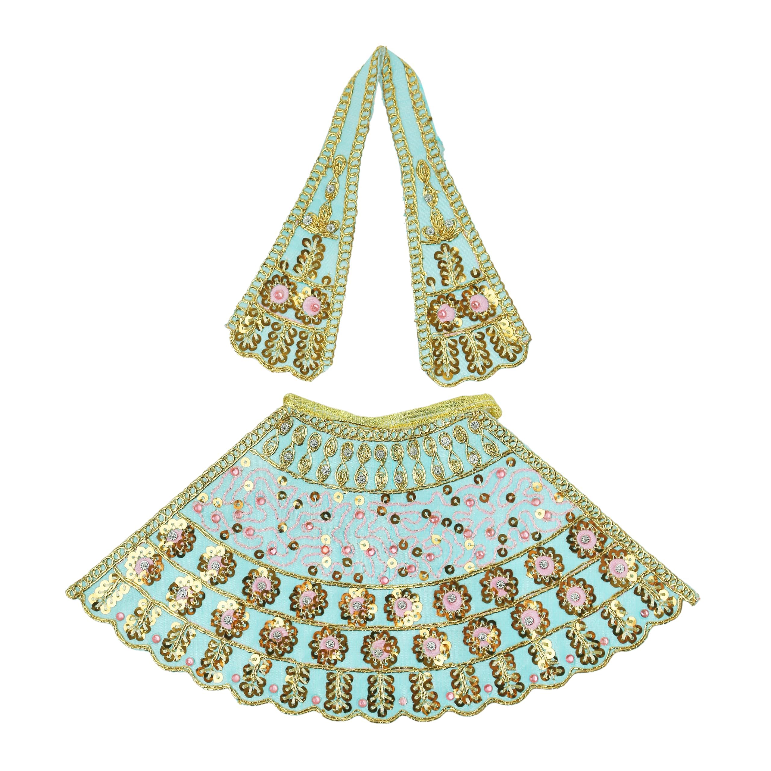 Hey, für alle, die ihre Hausgötter besonders schick machen wollen! Dieses süße 2-teilige Kleiderset für Götterstatuen ist perfekt für besondere Anlässe wie Navratri, Diwali oder andere Puja-Zeremonien. Die Sets kommen in knalligen Blau- und Pinktönen und sind aus weichem Samtstoff gefertigt, der sich super anfühlt. Jedes Set besteht aus einem Lehanga (5 Zoll hoch, 9 Zoll breit) und einem Dupatta/Chunari (14 Zoll lang) - also alles, was man braucht, um kleine Laxmi, Durga, Ganesh oder andere Götterstatuen in Schale zu werfen. Das Besondere daran: Das Überreichen von Kleidung an Gottheiten ist eine uralte Tradition, die Respekt und Hingabe zeigt. Die Details sind richtig liebevoll gemacht und die Verarbeitung ist top. Perfekt für die Hausdekoration während der Festtage oder als Geschenk für liebe Verwandte. Macht einfach jede Puja-Zeremonie zu was Besonderem!