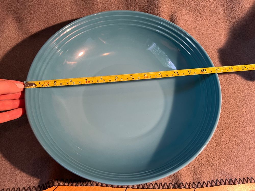 Style für deine Tafel! Diese Servierschale von Le Creuset aus hochwertigem Steinzeug bringt französischen Flair auf deinen Tisch. 32cm Durchmesser - ideal für Salate, Obst, Brot oder Beilagen. In 8 klassischen Le Creuset Farben erhältlich. Spülmaschinengeeignet und mikrowellensicher. Perfekt für festliche Anlässe oder den täglichen Gebrauch. Kombinierbar mit anderem Le Creuset Geschirr für ein harmonisches Gesamtbild. Mehr als nur eine Schale - ein Statement für deine Einrichtung!