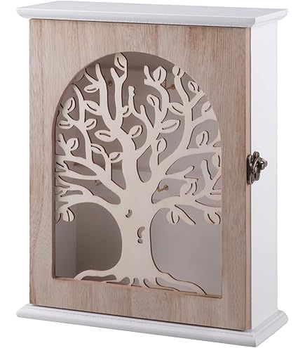 Rongxze Schlüsselkasten Holz Mit Lebensbaum-Motiv - Vintage Schlüsselhalter Für Flur & Eingang
