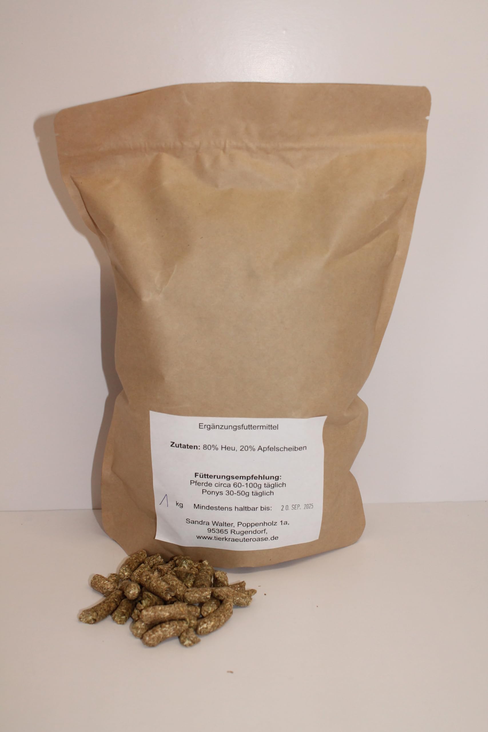 Pferdebesitzer, eure Vierbeiner werden diese Leckerlie lieben! Diese selbstgepressten Apfel-Leckerlie bestehen aus nur zwei Zutaten: 80% Heu aus eigenem Anbau und 20% Apfelscheiben. Völlig natürlich, ohne irgendwelche Zusatzstoffe oder Bindemittel. Die Leckerlie haben einen Durchmesser von 8mm - perfekt für Pferde und Ponys aller Größen. Einfach als Belohnung nach dem Training, beim Putzen oder einfach so zwischendurch. Die Apfelscheiben sorgen für den natürlichen Süßgeschmack, den Pferde so lieben, während das Heu für die nötige Ballaststoffe sorgt. In der 1kg-Packung hast du lange was von den Leckerlies. Wichtig: Kühl und dunkel lagern, damit sie frisch bleiben. Perfekt für sensible Pferde, die auf künstliche Zusätze reagieren. Auch ideal für Pferde mit bestimmten Fütterungsanforderungen. Dein Pferd wird dich für diese gesunde Leckerei lieben - und du kannst beruhigt sein, dass du nur das Beste gibst. Einfach ein natürlicher Snack für glückliche Pferde!