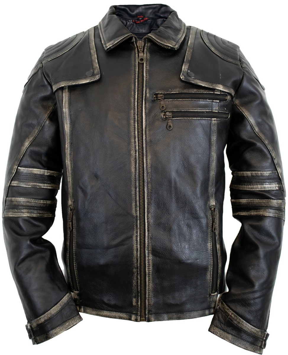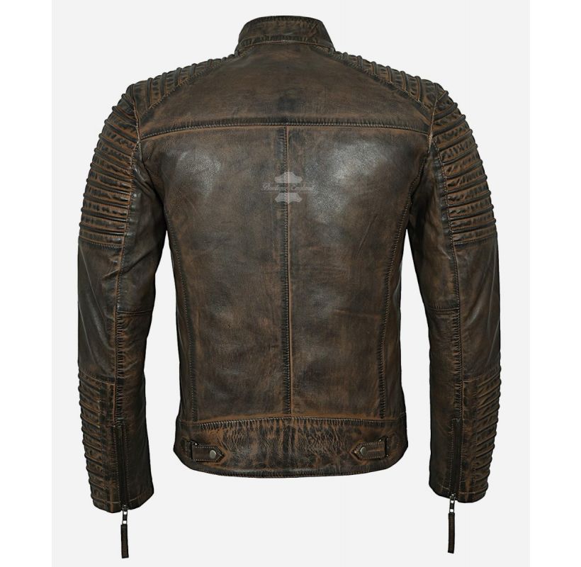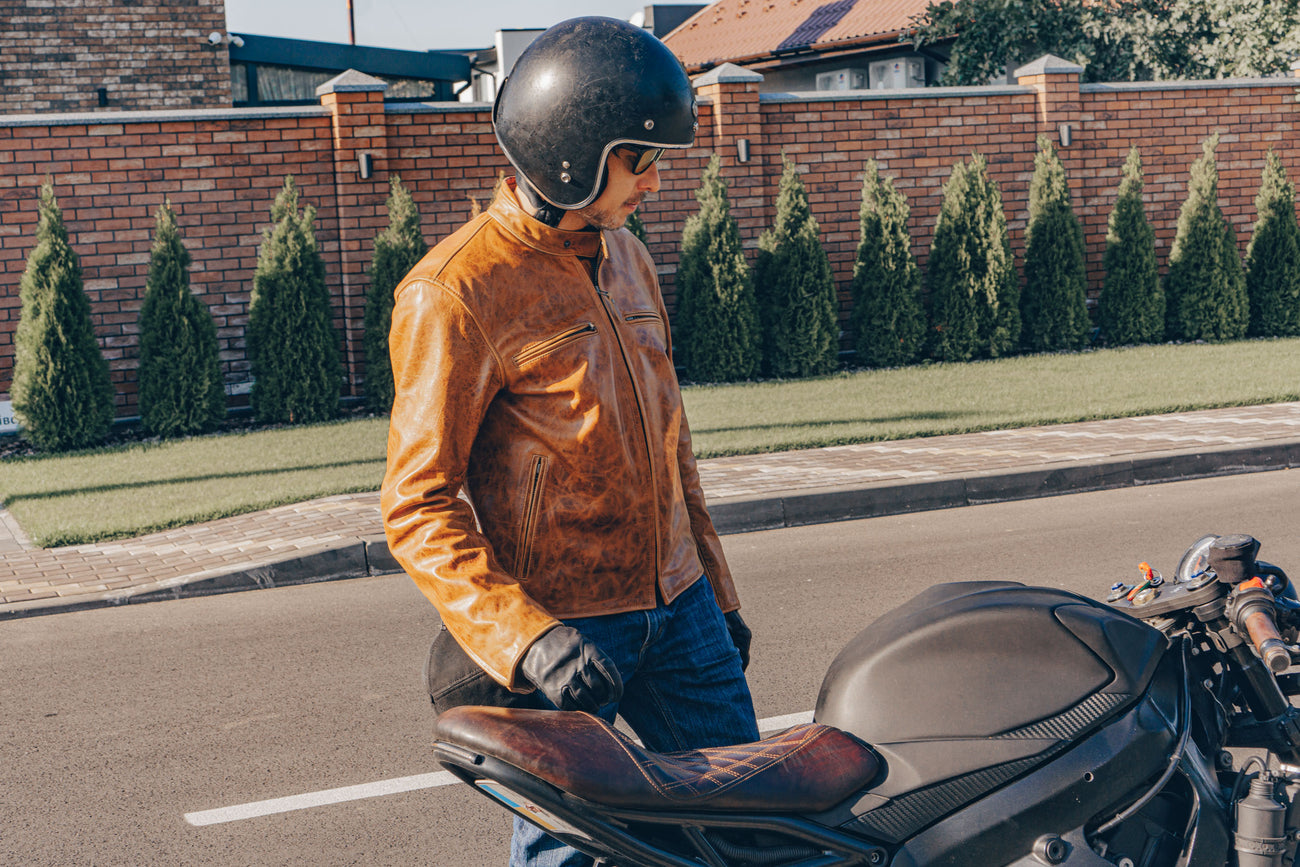 Herren Motorradjacke Leder - Cafe Racer Vintage Style - Braun Mit Used-Look