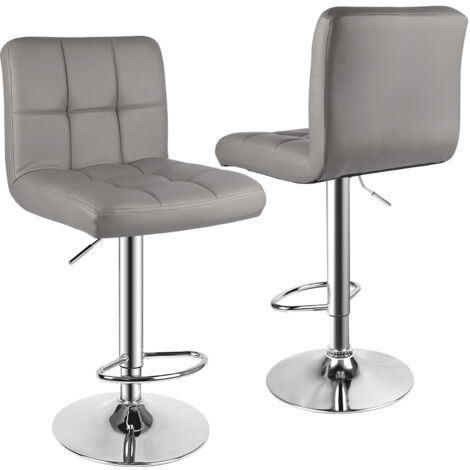 Chairus Barhocker 2er Set Grau - PU-Leder Mit Lehne Und Fußstütze Für Küche