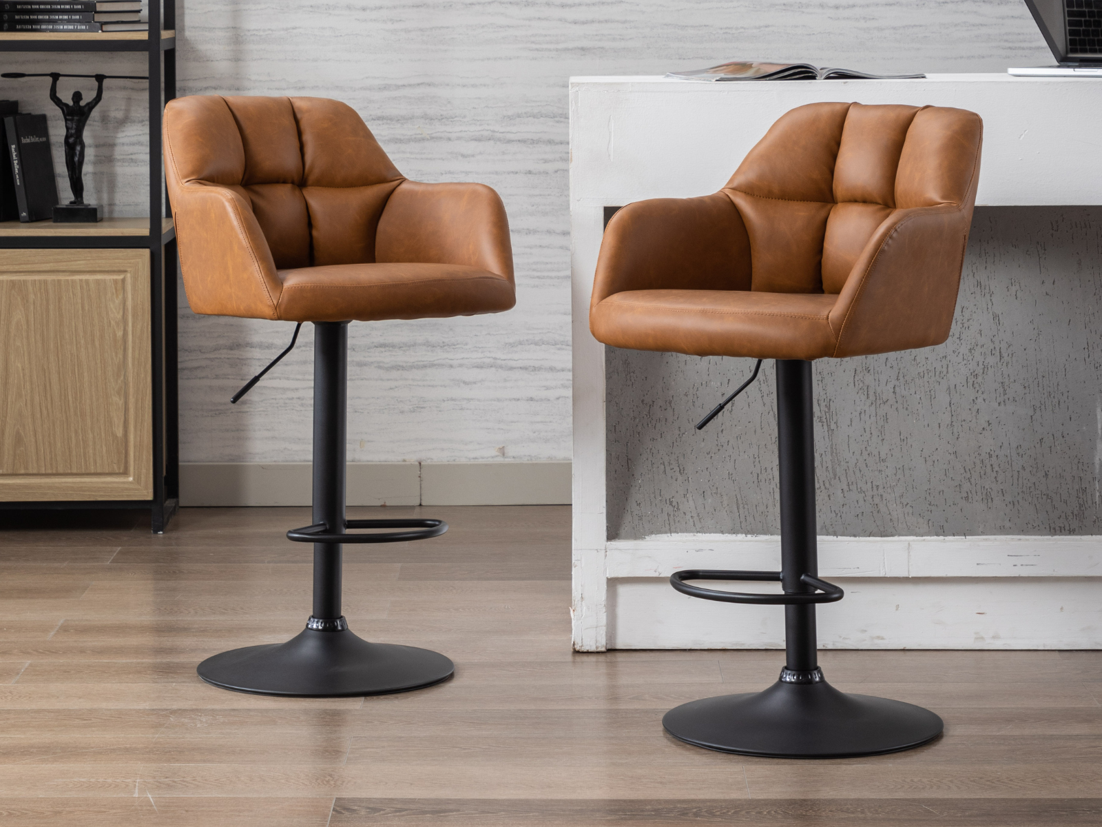 Bring stylisches Ambiente in deine Küche oder Hausbar mit diesem chairus Barhocker-Set! Die zwei Hocker aus grauem PU-Leder sind nicht nur schick, sondern auch super bequem. Die gesteppte Sitzfläche und die Rückenlehne bieten optimalen Komfort, während die Fußstütze für entspanntes Sitzen sorgt. Die robusten Metallbeine garantieren Stabilität und sind mit Gleitern ausgestattet, die deinen Boden schützen. Mit einer Sitzhöhe von 66 cm und einer Gesamthöhe von 87 cm passen die Hocker perfekt zu Theken und Kücheninseln. Einfach montieren und sofort genießen – ob zum Frühstück, für gemütliche Abende oder als Gästesitzgelegenheit. Modern, funktional und langlebig!