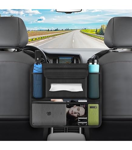 Schluss mit dem Chaos im Auto! Diese praktische Auto-Netztasche aus hochwertigem PU-Leder schafft sofort Ordnung zwischen deinen Vordersitzen. Mit den Maßen 38x12x26 cm passt da echt viel rein: Handy, Wasserflasche, Snacks, Sonnenbrille, Geldbörse - alles hat endlich seinen festen Platz! Die Tasche ist nicht nur super praktisch, sondern sieht auch noch richtig edel aus mit ihrem schwarzen Leder-Look. Und das Beste: Sie ist wasser- und staubabweisend - also keine Angst vor verschütteten Getränken! Die Installation ist kinderleicht: Einfach den verstellbaren Nylonriemen durch die Kopfstütze fädeln und mit dem Klettverschluss fixieren - fertig in 2 Minuten! Die Tasche sitzt bombenfest und wackelt nicht, selbst bei rasanten Fahrten. Perfekt als Barriere für Hunde oder Kinder auf der Rückbank - so kommen die nicht so einfach nach vorne! Aber Achtung: Passt nicht für seitlich öffnende Armlehnen, doppelte Armlehnen oder armlehnlose Sitze - vorher checken! Ob im Auto, Truck oder Van - dieser Organizer macht aus jedem Fahrzeug einen aufgeräumten Ort. Und nach der Fahrt einfach aus dem Auto nehmen und mitnehmen - so behältst du immer den Überblick über deine Sachen! Endlich kein Suchen mehr - alles griffbereit! Deine Mitfahrer werden staunen, wie ordentlich dein Auto plötzlich ist...