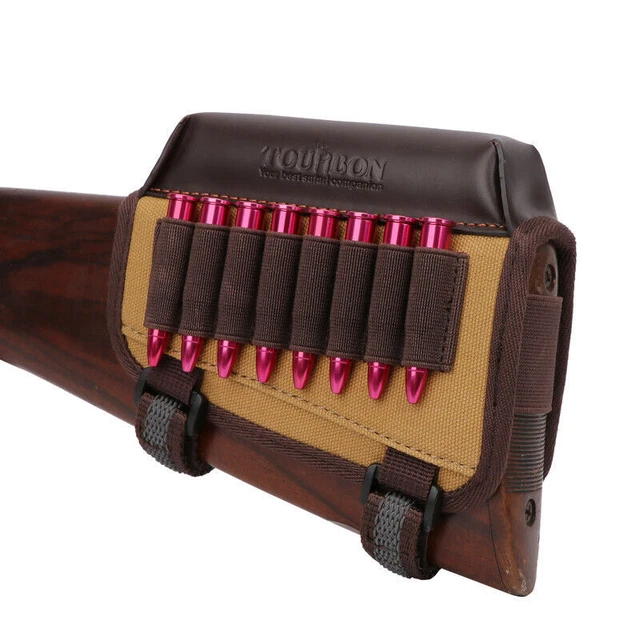 TOURBON Munitionstasche Aus Leder - Wangenauflage Für Gewehrschäfte Mit 5 Patronenfächern