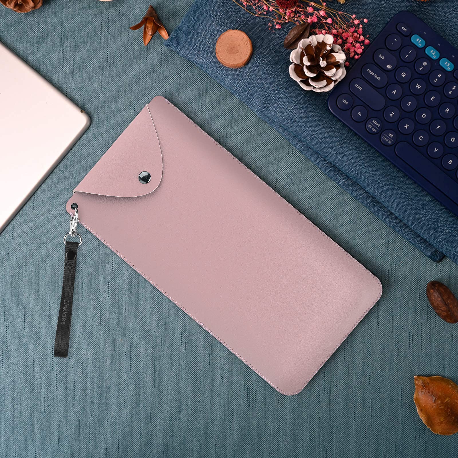 Schütz deine Tastatur in Style! Diese rosa Hülle aus veganem Leder passt perfekt für Logitech K380, Pebble Keys 2, Keys-to-Go 2 und Magic Keyboard. Mit magnetischer Schnalle und abnehmbarem Trageriemen - super praktisch für unterwegs. Schützt vor Stößen, Kratzern und Spritzern. Maße: 30x15cm, genau richtig für deine Tastatur. Einfach reinstecken, zuschnallen und los geht's. Sieht nicht nur gut aus, sondern hält dein Equipment auch sicher. Perfekt für Beruf, Reisen oder Uni. Hol sie dir und transportiere deine Tastatur sorgenfrei!