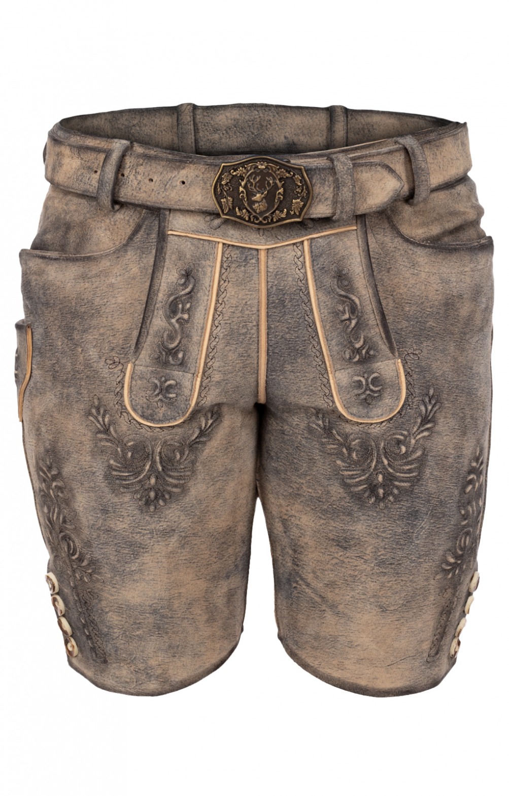 Maddox Lederhose Fleesensee Herren - Ziegenvelours Kurze Lederhose Blau Grau