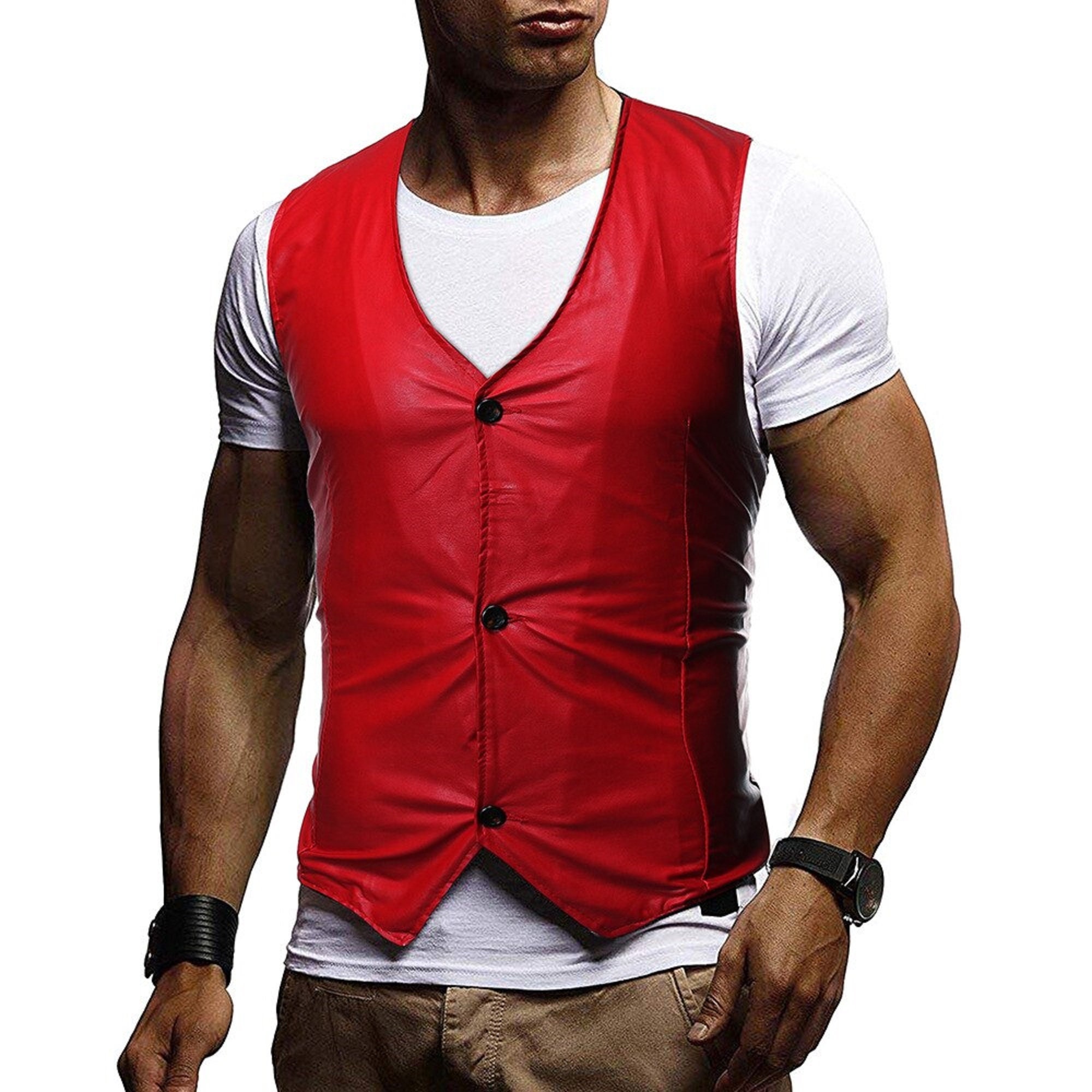 Motorrad Lederweste Herren - Slim Fit Lederweste ärmellose Jacke Für Business & Casual