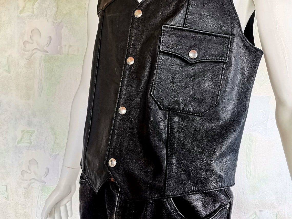 Style wie ein echter Rocker! Diese vintage Lederweste gibt dir sofort den coolen Retro-Look. Ärmellos und super bequem, mit praktischen Reißverschlusstaschen für deine wichtigsten Dinge. Der V-Ausschnitt sitzt perfekt und die Verarbeitung ist top. Ob für die Motorradtour, den Festival-Besuch oder einfach als lässiger Alltags-Look - diese Weste macht immer eine gute Figur! Aus weichem Leder, das sich angenehm tragen lässt und mit der Zeit noch charaktervoller wird. Perfekt für Herbsttage oder kühlere Sommerabende. Hol dir diesen zeitlosen Klassiker und ergänze deine Garderobe um ein absolutes Must-Have!