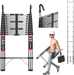 Wow, diese Teleskopleiter von XUELOMZ ist echt praktisch! Aus Aluminium und deshalb super leicht - aber trotzdem stabil bis 150 kg. Sie geht von nur 1,4 Meter auf volle 8 Meter raus - das sind stolze 26 Fuß! Perfekt für alles mögliche: Fensterputzen, Dachrinnen reinigen, Malerarbeiten oder einfach nur um mal auf den Dachboden zu kommen. Das coole ist, dass sie sich ganz klein zusammenfalten lässt - passt easy in den Kofferraum oder in den Schrank. Mit den Haken ist sie auch super sicher. Ob für den Hausgebrauch oder für Profis - damit kommst du überall hin! Achtung beim Zusammenklappen: Hände weg von den Sprossen! Lieferung inklusive Teleskopleiter - alles was du brauchst. Ein echter Alleskönner für jeden Haushalt!