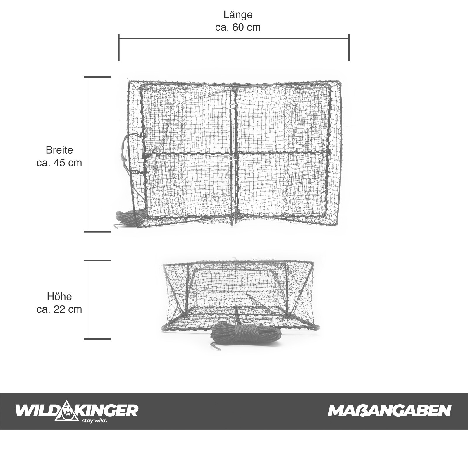 Fang dein eigenes Abendessen! Diese praktische Krebsfalle ist perfekt für alle die gerne Krabben, Krebse oder Aale fangen wollen. In zwei Größen erhältlich: 31,5x19x19cm oder 50x19x19cm - je nachdem was du fangen willst. Aus robustem PP-Material gefertigt das sowohl im Süß- als auch im Salzwasser hält. Die Falle kommt komplett mit: • 6 Meter Nylon-Seil • Köderball • Optional mit Gewichtskiste für stärkere Strömung Das clevere Design mit umgekehrten Stacheln verhindert dass die gefangenen Tiere wieder entkommen. Einfach Köder in den Köderball geben, Falle ins Wasser lassen und warten. Perfekt für: • Angler • Outdoor-Enthusiasten • Camper • Selbstversorger Ob am See, Fluss oder am Meer - diese Falle funktioniert zuverlässig. Leicht genug zum Transportieren, stabil genug für den Einsatz. Tauche ein in die Welt des Fischfangs und genieße den frischen Fang!