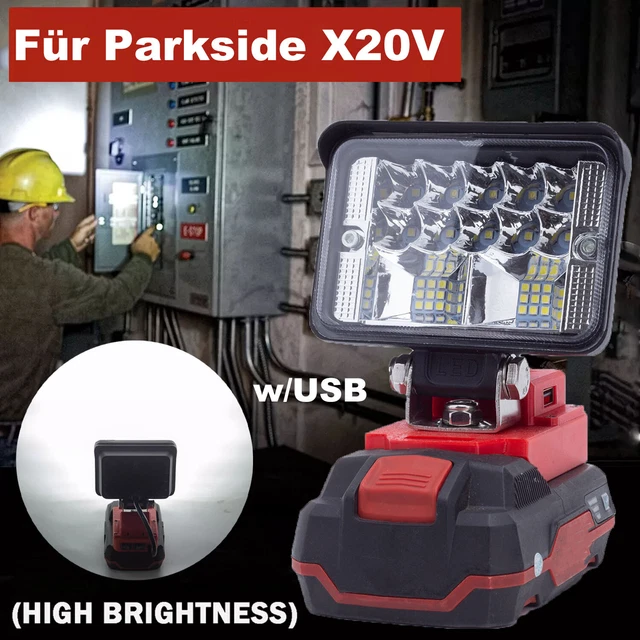 Leichte Schnurlose Arbeitsleuchte Für Parkside X20V - Mit 1200-1500 Lumen, Verstellbarem Kopf & Aufhängehaken