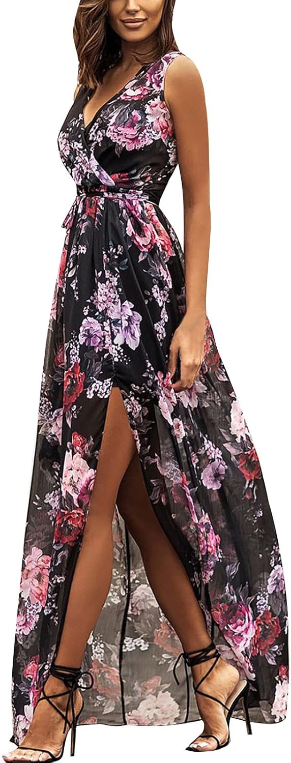 Damen Wickelkleid Sommer - Leichtes Maxikleid Mit Blumenprint