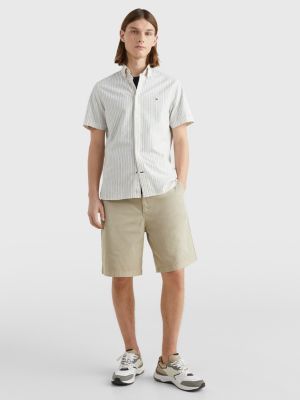 Leinen Hemd Herren Kurzarm Gestreift - Bügelfrei Sommerhemd Regular Fit