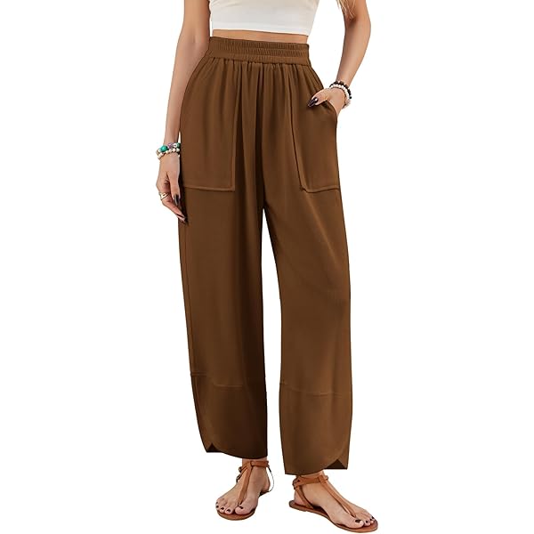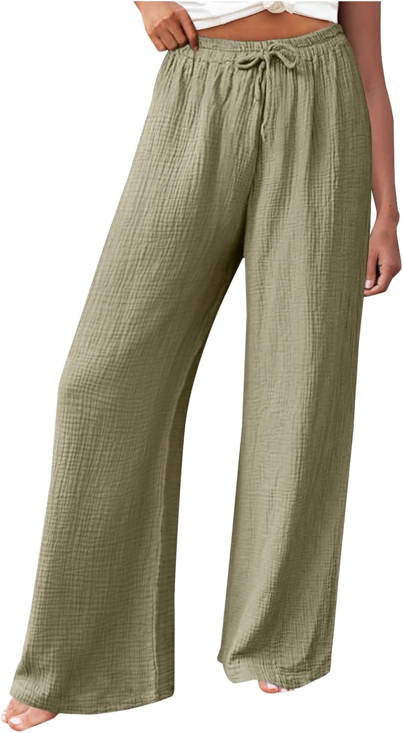 Damen Leinenhose Aus Musselin - Leichte Sommerhose Mit Elastischem Bund