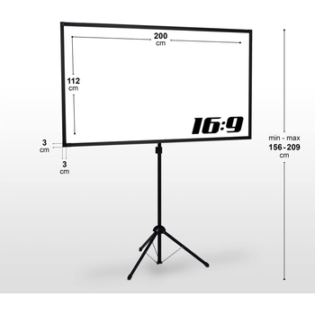 Kino-Feeling in deinem Zuhause! Diese hochwertige Stativ-Leinwand von ESMART verwandelt jeden Raum in ein privates Kino. 🎬 LEINWAND-DATEN: • Bildfläche: 186 x 105 cm (84 Zoll) • Format: 16:9 • Gain-Faktor: 1,1 • Gehäuse: 202 cm • Betrachtungswinkel: >150° SCHNELL AUFGEBAUT: Das stabile Dreibein-Stativ steht in unter 5 Minuten - komplett ohne Werkzeug! Perfekt für flexible Heimkino-Lösungen oder wenn du die Leinwand mal woanders aufstellen möchtest. HOCHWERTIGES LEINWANDTUCH: Das ESMART PerfectWhite 2 Oxford-Gewebe bietet ein brilliant scharfes Bild mit lebendigen Farben. Die schwarze Rückseite verhindert störende Doppelbilder. OPTIMALE SITZPOSITION: Der ideale Sitzabstand beträgt etwa das Doppelte der Leinwandbreite. Stelle sicher, dass das untere Drittel des Bildes auf Augenhöhe ist für das beste Kino-Erlebnis! Perfekt für LCD- und DLP-Projektoren. Mach dein Wohnzimmer zum Kino - mit dieser professionellen Leinwand!
