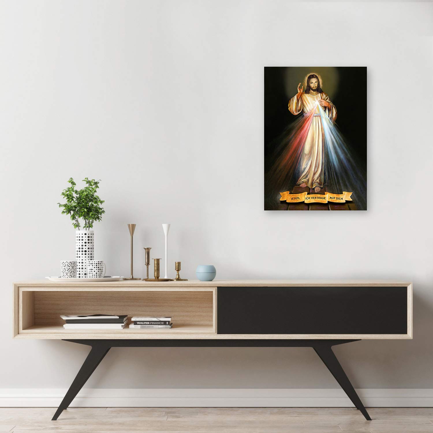 Beeindruckende religiöse Kunst für deine Wände! Dieses wunderschöne Jesus-am-Kreuz Motiv kommt als fertiges Leinwandbild in 60x50 cm Größe. Auf hochwertiger 250g/m² Leinwand gedruckt, mit matter Oberfläche und lebendigen, UV-beständigen Farben. Der 2cm tiefe Galerie-Keilrahmen aus FSC-zertifiziertem Holz gibt dem Bild Profil. Handgespannt in Deutschland - keine Billigware! Komplett mit Aufhänger und Spannkeilen. Einfach auspacken, aufhängen und den Raum verwandeln. Perfekt für Wohnzimmer, Schlafzimmer oder als inspirierende Deko. Ein hochwertiges Kunstwerk, das lange Freude bereitet und deinem Zuhause eine besondere Note verleiht!