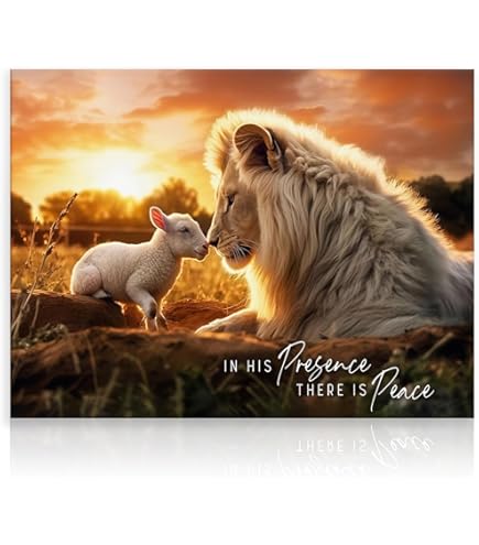Suchst du nach einer besonderen Wanddekoration mit tiefer Bedeutung? Dieser gerahmte Leinwanddruck zeigt die berührende Szene von Jesus als dem Löwen von Juda mit einem Lamm - ein starkes christliches Symbol für Stärke und Sanftmut zugleich. Mit den Maßen 30 x 40 cm ist das Bild perfekt für dein Wohnzimmer, Schlafzimmer oder sogar für die Kirche. Die Leinwand ist schon fertig gerahmt und gespannt, also einfach aufhängen und sofort genießen! Das Motiv erinnert an die Fürsorge und Liebe Jesu und bringt eine besondere spirituelle Atmosphäre in deine vier Wände. Ob als tägliche Inspiration oder als besonderes Geschenk für christliche Freunde und Familie - dieses Kunstwerk spricht direkt ins Herz. Die Farben sind kräftig und die Darstellung einfühlsam. Jedes Mal, wenn du daran vorbeigehst, wirst du an die Bedeutung des Glaubens erinnert. Übrigens: Falls du Fragen zum Produkt hast, stehe ich dir gerne zur Verfügung! Einfach eine Nachricht schicken und ich antworte schnellstmöglich. Mach deine Wände zu etwas Besonderem mit dieser tiefgründigen religiösen Kunst!