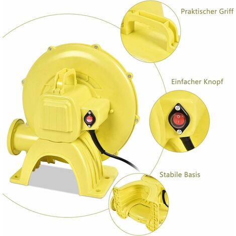 Schluss mit anstrengendem Aufpumpen! Dieses 950W Gebläse bläst mit 2200Pa Druck und 680m³/h Luftstrom alles auf, was aufblasbar ist. Ob Hüpfburg, Schlauchboot oder Luftballons - in wenigen Minuten ist alles startklar. Das gelbe PP-Gehäuse ist flammhemmend und super robust. Mit nur 60-75dB erstaunlich leise für so viel Power. Praktisch: Griff zum Tragen, 4 Erdnägel für festen Stand und 2m Kabel. Die Mesh-Gitter schützen vor neugierigen Fingern und Schmutz. Perfekt für Gartenpartys, Strandausflüge oder den nächsten Kindergeburtstag. Einfach Stecker rein, Schalter umlegen und zuschauen, wie sich alles von alleine füllt! Ein echter Game-Changer für alle, die oft aufblasbare Sachen nutzen.