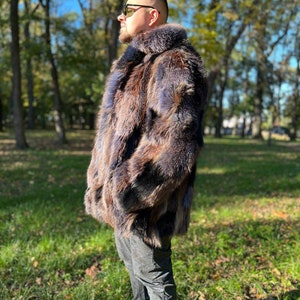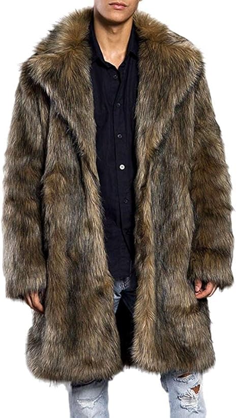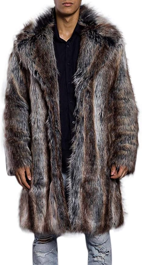 Wollmantel Herren Winter - Leopardenmuster Pelzjacke Lang