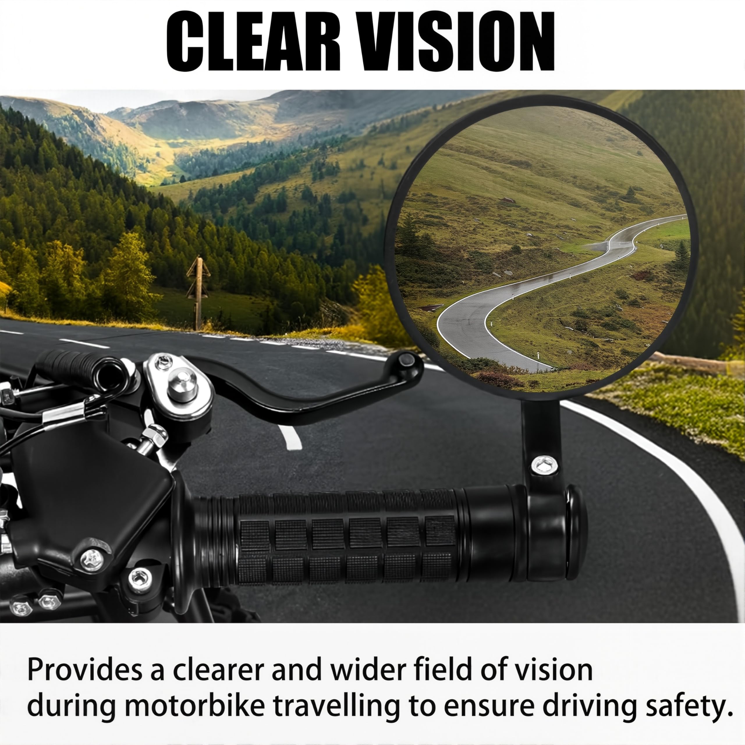 Blick in die Spiegel - alles klar! Diese E-geprüften Motorradspiegel geben dir den perfekten Überblick. Mit 22mm Durchmesser passen sie an fast alle 7/8\ Lenker. 360° drehbar und verstellbar für den optimalen Blickwinkel. Aus stoßfestem Aluminium, vibrations- und korrosionshemmend. Die konvexen Spiegel bieten ein breiteres Sichtfeld als normale Spiegel - mehr Sicherheit auf der Straße! Einfach in die Lenkerenden stecken und Schrauben festziehen. Passt für Motorräder, Roller, Cruiser, Quads, ATVs - einfach alles mit passendem Lenker. Mach deine Fahrt sicherer!