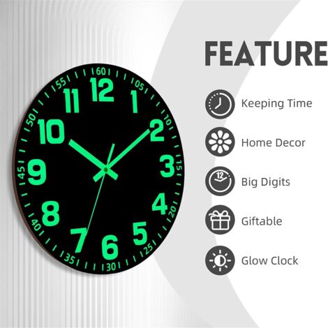 APIELE 12 Zoll Wanduhr - Leuchtend & Silent Für Schlafzimmer & Wohnzimmer