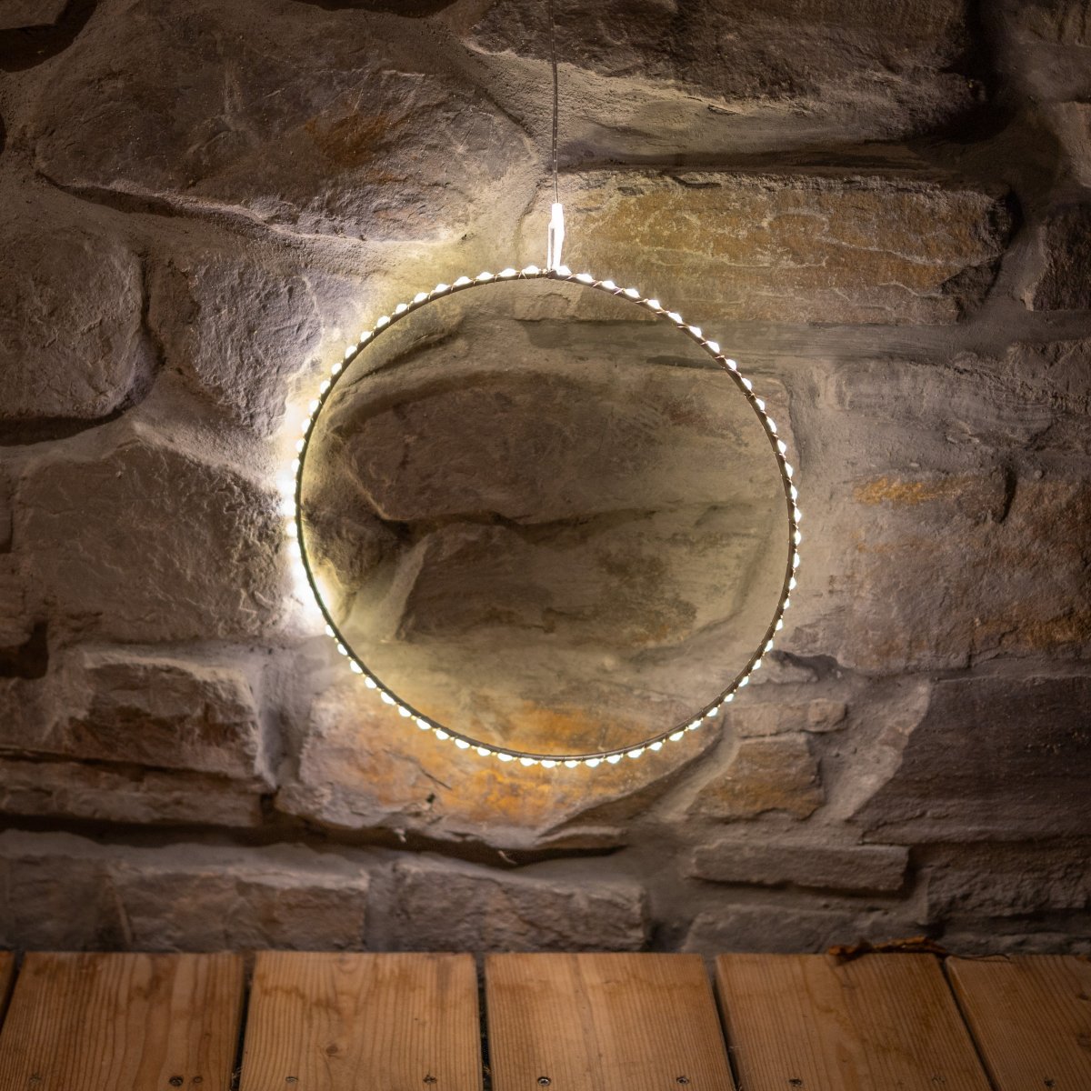 Weihnachtliche Stimmung garantiert! Dieser goldene Leuchtring mit 20 warm-weißen LEDs bringt festlichen Glanz in dein Zuhause.\n\nProduktdetails:\n• Durchmesser: 30 cm\n• 20 LED in warm-weiß\n• Timer-Funktion: 6h AN / 18h AUS\n• Batteriebetrieben (2x AA, nicht enthalten)\n• Kabellänge: 150 cm\n\nEinfach aufhängen und einschalten! Der Timer sorgt dafür, dass das Licht sich automatisch ein- und ausschaltet - praktisch und energiesparend.\n\nPerfekt für:\n• Weihnachtsbaum-Dekoration\n• Fenster und Türen\n• Wände und Decken\n• Adventsdekoration\n• Festliche Tischdekoration\n\nDer goldfarbene Ring sieht edel aus und passt zu jedem Weihnachtsdekor. Einfach die Batterien einlegen, aufhängen und sich an der festlichen Atmosphäre erfreuen!\n\nNur für Innenbereich geeignet. Mach dein Zuhause weihnachtlich gemütlich - schnell, einfach und wunderschön!