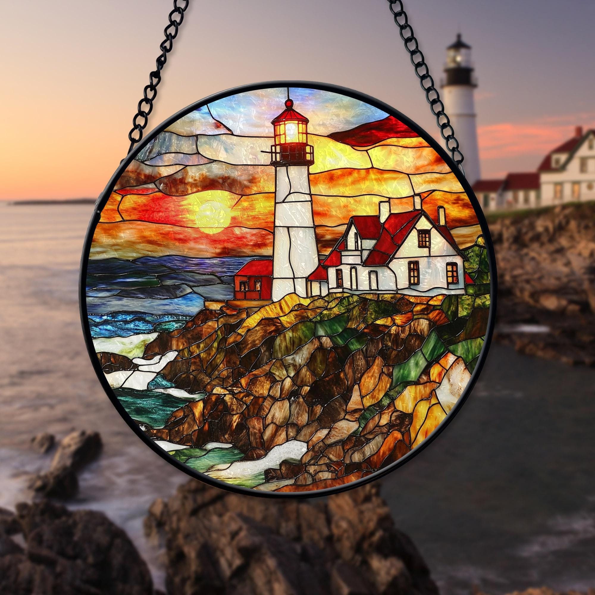 AvalGlass Buntglas-Leuchtturm - Sonnenfänger Für Fenster & Deko